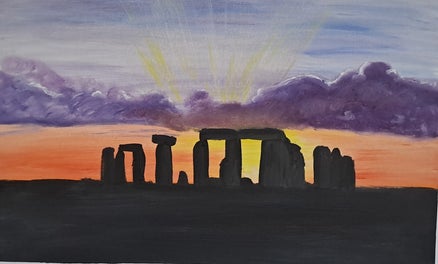 Sunburst Stonehenge - oil, 28x18cm, £35